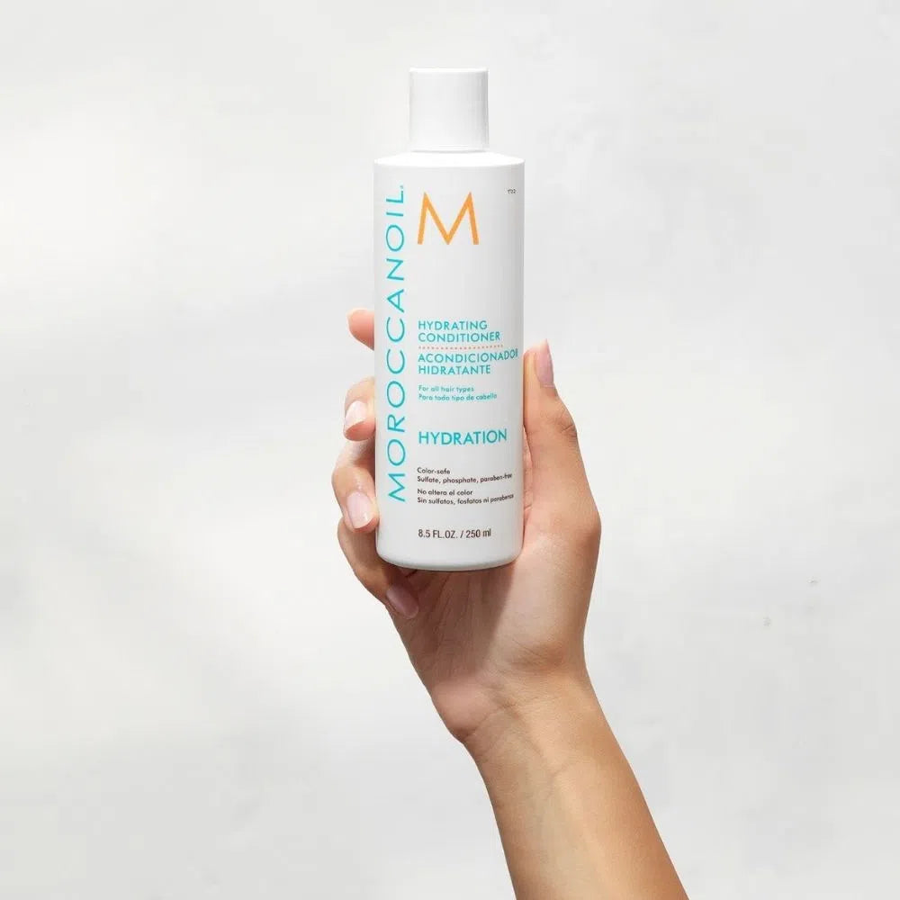 Acondicione y desenrede el cabello deshidratado con el Acondicionador Hidratante Moroccanoil®. Esta fórmula suave de uso diario deja el cabello más suave, manejable, y facilita la creación de estilos y peinados. Su fórmula a base de aceite de argán rico en antioxidantes, vitamina A, vitamina E y algas rojas consigue la máxima hidratación en todo tipo de cabello. No altera el color.