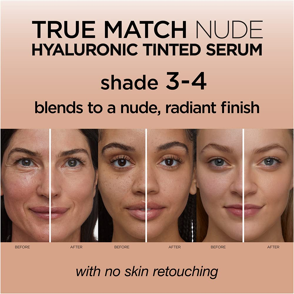 L'Oréal Paris True Match Nude Hyaluronic Tinted Serum en el tono 3-4 Light-Medium es una innovadora combinación de maquillaje y cuidado de la piel, perfecta para quienes buscan un acabado natural y saludable.