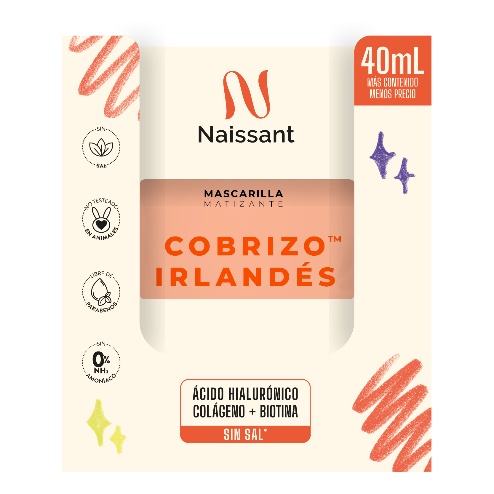 Mascarilla Matizante Naissant Cobrizo Irlandés es un tratamiento con depósito de color, especialmente formulado para mantener, intensificar y corregir el color en cabellos teñidos con tonos cobres o rojizos.