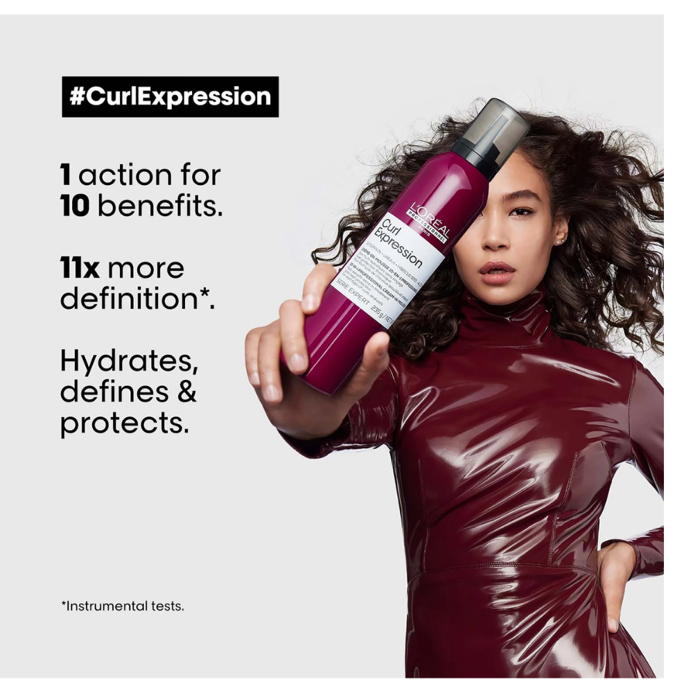Este producto es único en la gama porque ofrece una textura híbrida: es una crema ligera convertida en mousse que no solo define y moldea los rizos, sino que también los protege y nutre.
