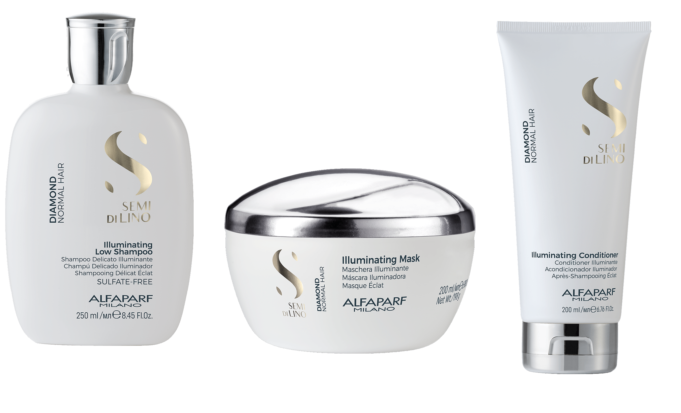 Lo último en brillo estilo al diamante. Una mezcla exclusiva de brillo único gracias a la última tecnología de Alfaparf del cuidado del cabello.