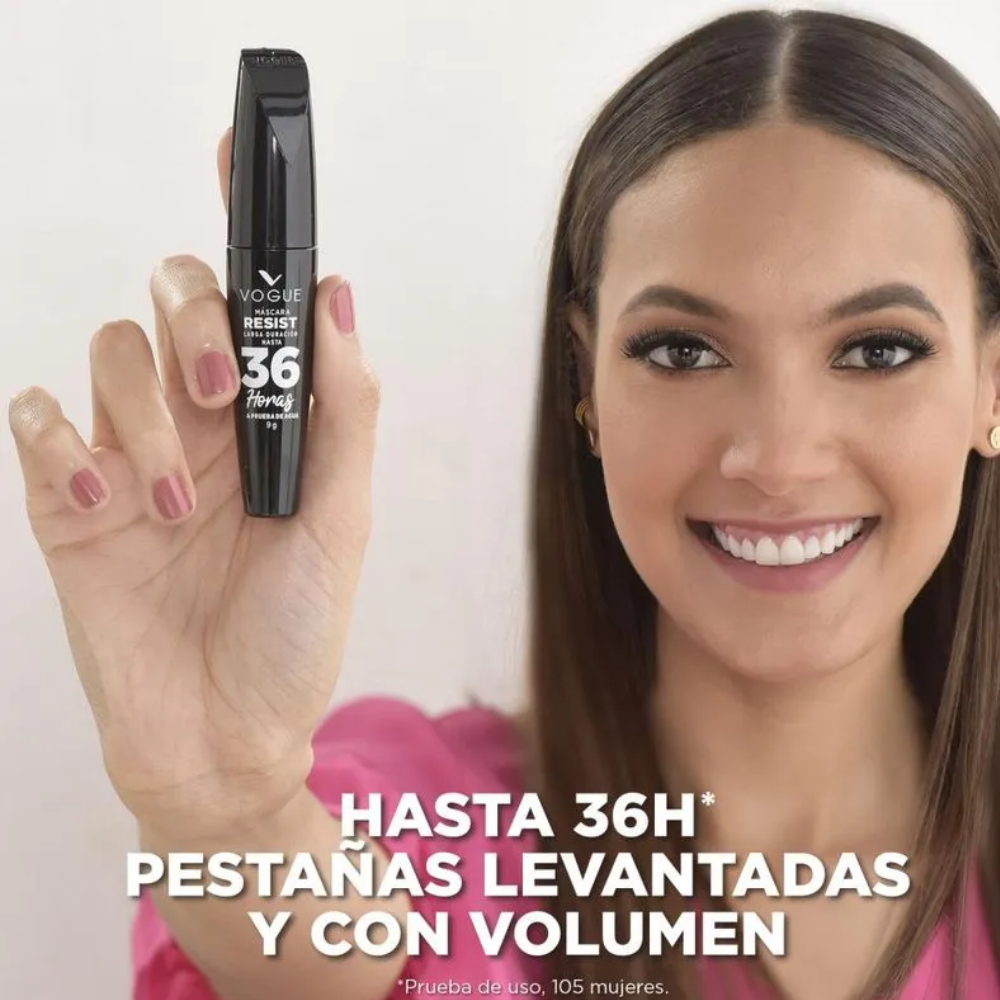 Pestañina Vogue "Resiste 36 Horas" es una de las máscaras de pestañas más destacadas de Vogue Cosméticos, conocida principalmente por su extraordinaria durabilidad y resistencia. Como su nombre lo indica, promete mantener tus pestañas impecables por hasta 36 horas.