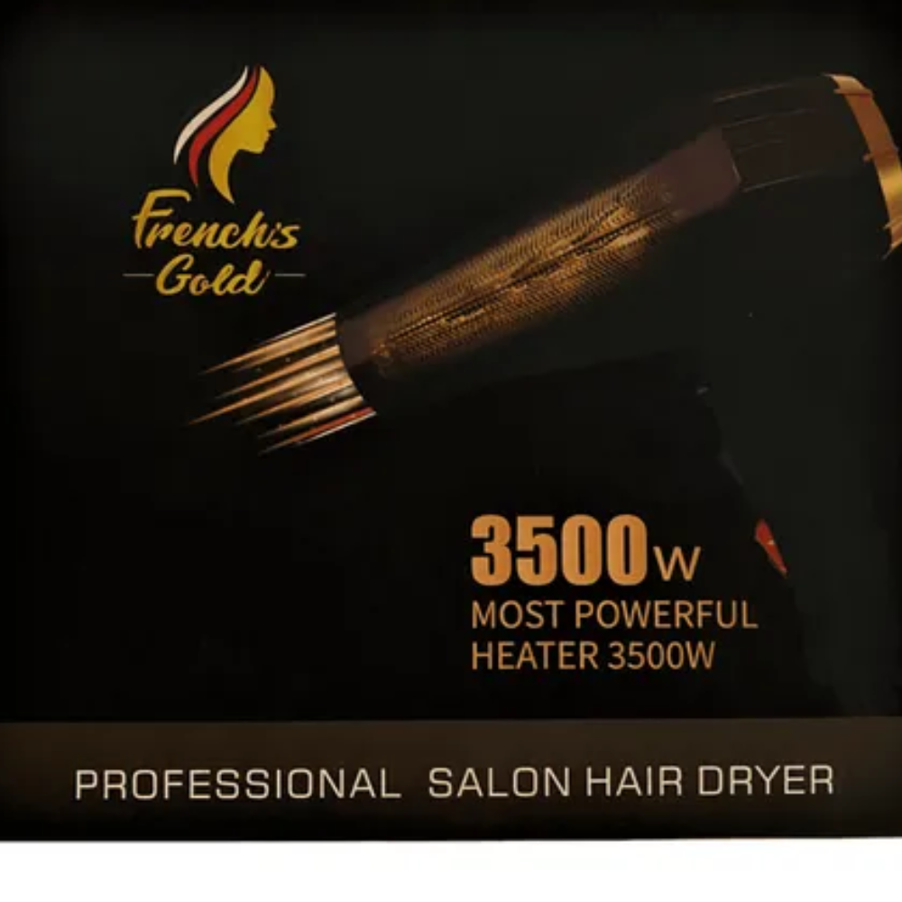 El secador French's Gold 3500W es un secador de cabello profesional que se destaca por su alta potencia y características diseñadas para un secado eficiente y un acabado de salón.