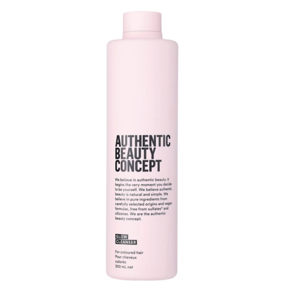 Shampoo Authentic Beauty Concept Glow Cleanser es un champú diseñado para limpiar suavemente el cabello teñido o con mechas, a la vez que potencia su luminosidad y protege el color.