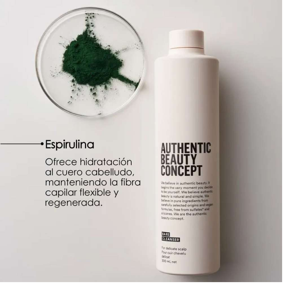 Shampoo Bare Cleanser de Authentic Beauty Concept es un Shampoo de limpieza profunda diseñado para purificar y desintoxicar el cuero cabelludo y el cabello. A diferencia de otros champús, este se destaca por su enfoque minimalista y su fórmula suave.