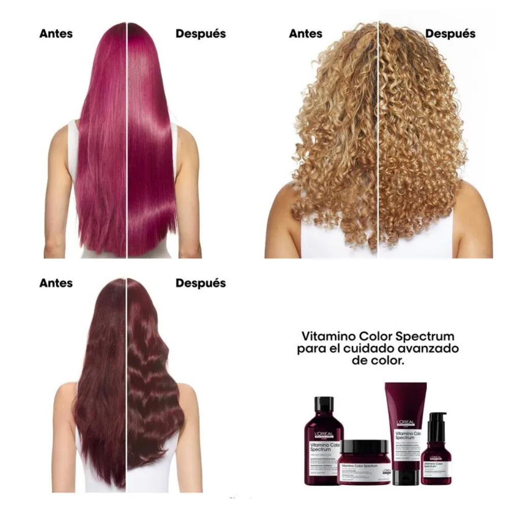 Protección Avanzada del Color: Su objetivo principal es prolongar la intensidad y la vitalidad del color. La fórmula ayuda a fijar el tinte dentro de la fibra capilar, logrando un color vibrante que puede durar hasta 100 días (utilizando el sistema completo Vitamino Color Spectrum).