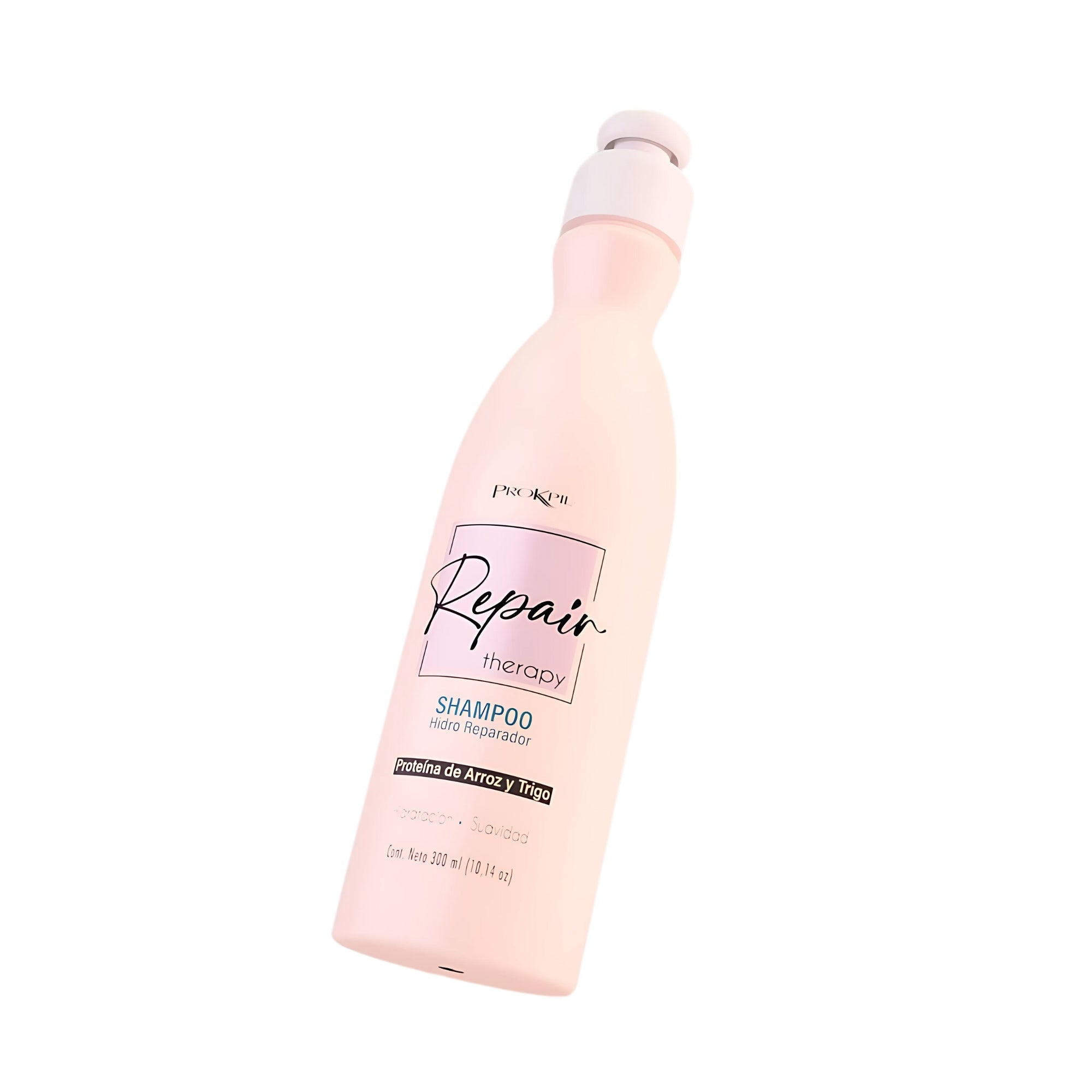 Aplica Shampoo hidro reparador Repair Therapy sobre el cabello mojado, distribuye homogéneamente masajeando el cuero cabelludo y el cabello, deja actuar de 2 a 3 minutos y enjuaga adecuadamente, de ser necesario repite el proceso.